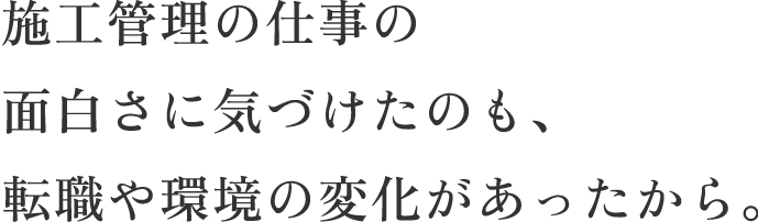 変わったのは、プライベートだけじゃありません。施工管理の仕事の面白さに気づけたのも、環境の変化があったからこそ。