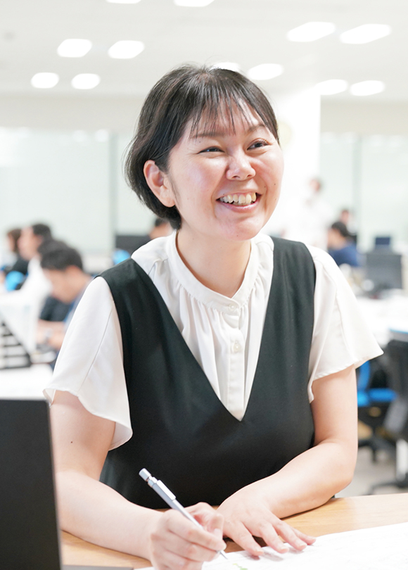 フレックスタイムや在宅勤務も柔軟に利用できます。例えば、子どもが急に体調不良となった時、朝一で病院に連れて行き、病院から帰ってきて11時から在宅で仕事を始めれば、フレキシブルタイムの範囲内となります。時短勤務にしなくても、フレックスタイム制や在宅勤務を活用すれば、フルタイムで働くことが叶います。私の場合は自宅から職場も近いですし、メンバーとコミュニケーションを図りながら業務を進めることが多いので、コロナ後の今は出社することが多いです。