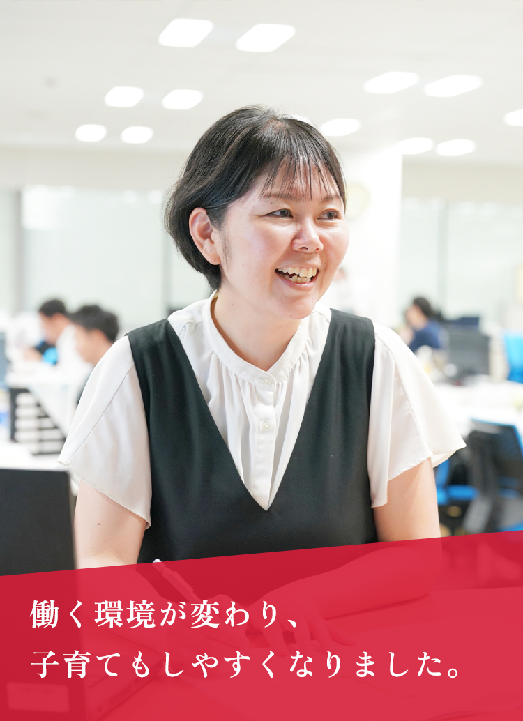 男性育休も取得することが義務付けられていて、会社全体が子育てに寛容です。私が定時後も仕事していると、「早く子どものお迎えに行かないと!」と支店のみんなが心配してくれ、本当にありがたいです。