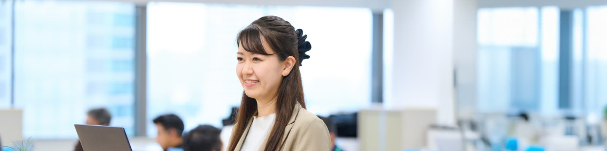 営業職から管理部門に異動したことで、組織全体を俯瞰して考える視点が身に付きました。また、人事システムの刷新プロジェクトにも携わる機会もあり、情報システム部や外部ベンダーと協力しながらシステム開発に関わるという、これまでにない経験も得られました。異動するまでは「営業職として長く活躍したい」と思っていましたが、キャリアの幅を広げる機会を得たことで、視野とスキルが広がったと実感しています。