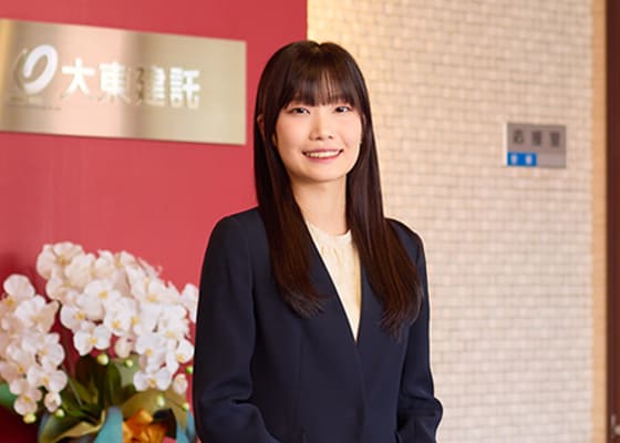住まいを通じて人々のくらしを支えたいとの思いから不動産業界を志望し、なかでもより多様な経験・キャリアを積むことができる大東建託グループへ入社。入社後はフロントスタッフとして、事務業務に従事。高い責任感と、迅速丁寧な対応を心がけ、多くの入居者様のくらしをサポートしている。