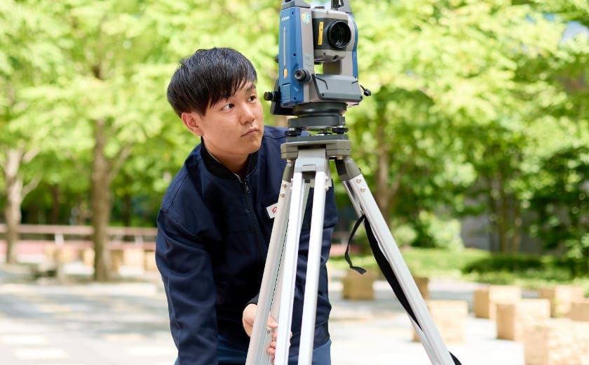 各部署や協力業者様と連携しながら、現場へも行き測量や調査・申請、図面通りに工事が進んでいるか検査することも重要な役割です。