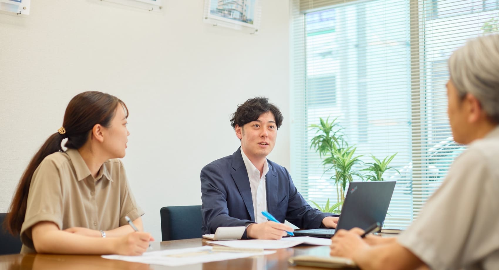 いまはまだメインで担当しているお客様がいないので、少しでも早く新規取引先を開拓したいと思っています。また、業務を遂行するうえで必要となるケースも多い宅地建物取引士(以下宅建と表記)の資格取得も目指していきたいです。そうして一通り建築に関しての知識を営業職で学んだ後は、本社での業務も経験してみたいですね。
