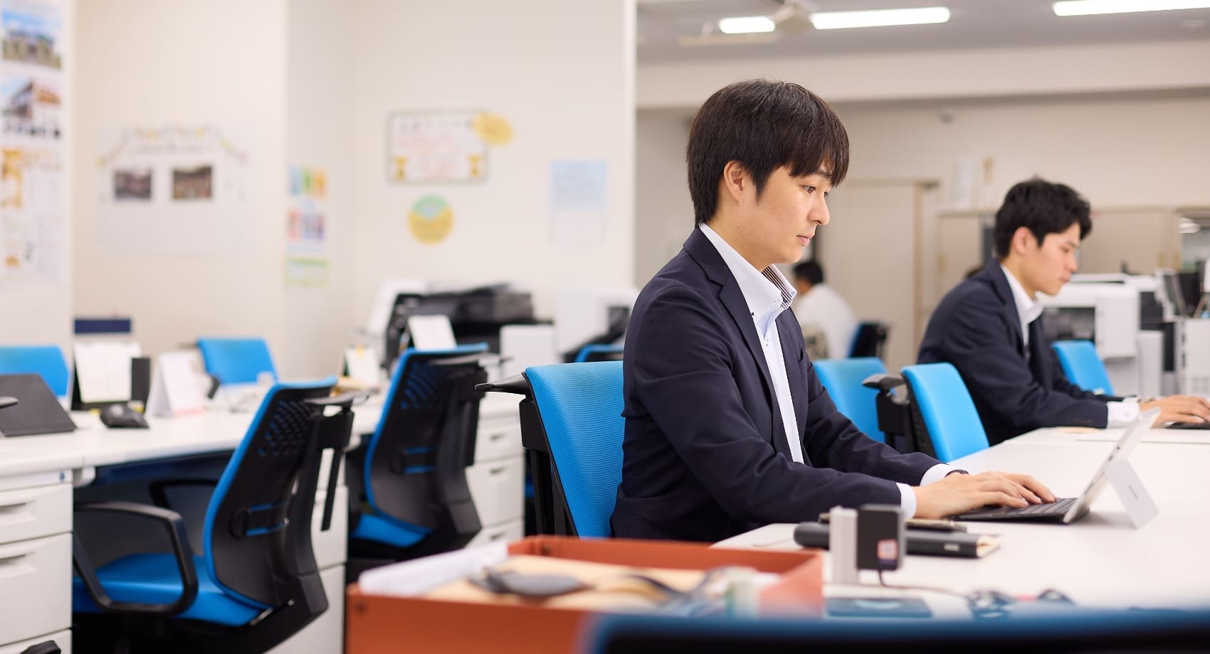 入力業務や契約書類の管理、トータルスタッフのサポート、営業所の経理処理、総務・人事関係の手続きなどを行います。オーナー様や入居者様、協力業者様などの電話対応や来店対応など、営業所内でのサポート全般を担います。営業所の円滑な業務進行には欠かせない存在です。