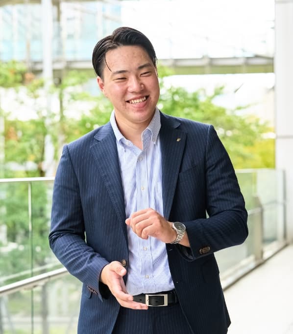 大学では経営学部に所属し、地域活性化の研究に励む。大学3年生から参加したIT企業の長期インターンシップをきっかけに、ITやアプリ開発を軸に企業を探していたところ、「いい部屋ネット」を運営する大東建託リーシングに出会う。社員の人柄や福利厚生の手厚さに魅力を感じて入社し、現在は法人事業部にてマンスリー賃貸の営業事務を担っている。